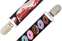 While the popular phrase goes, "Have your cake and eat it too," we say, "Have your cake and wear it, too!" Not literally, of course, but in the form of food-themed suspenders. While wearing your food does not sound appealing, wearing suspenders with different food themes does. Our great novelty selection of suspenders includes something for everyone, including all the foodies out there. Browse our growing assortment for different delectable patterns such as bacon suspenders, pizza suspenders and lots of other savory treats. Food suspenders are a great way to add a touch of whimsy to any outfit even conservative ones and ooze lots of personality. As any man or woman working in a corporate environment can tell you, they do not have much flexibility when it comes to how creative they can get with their outfits. Food suspenders are a fun and human resources-approved way to add color and personality to your business outfits. You will be the talk of the boardroom. They also make a "tasteful" gift for the chef, baker or restauranteur. If you own a restaurant, bakery or other food establishment, consider adding food suspenders to your staff's uniform for a fun touch. These suspenders are made in the U.S. from comfortable elastic and feature clip-on attachments. They offer a lightweight hold and serve more of a decorative purpose than a utilitarian one. Many of the designs come in lengths that fit kids and adults; the 40-inch length will fit most average-sized kids from about 6 to 7 years old up to five feet, five inches; the 50-inch length will fit most adults (or big kids) from about five feet, five inches to six feet, two inches. They feature a metal crosspatch and are fully adjustable so virtually everyone can find their perfect fit. Our selection is affordably priced so you can add several pieces to your suspender collection.