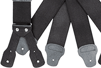 When wearing suspenders for heavy-duty work, such as logging, ranch handling, construction and more, you need a pair of suspender attachments that can withstand the rigors of the job. For those who are searching for a tough-wearing pair of suspenders, our industrial-end button attachment suspenders live up to the challenge. Based on looks alone, you can tell that they are made for the job. Typically constructed from premium riveted brown leather, these button ends have a sturdier look and feel than standard leather "rabbit ear" or mustache ends found on dressy and business suspenders. They are made for holding up heavy-duty pants, pants weighed down by tool belts and for guys and gals tasked with doing strenuous work. The metal rivets are made from strong hardware that adds reinforcement to the attachments. When it comes to wearing industrial button ends, the functionality is the same as our traditional leather-end attachments. They secure to the buttons on the inside or outside of pants and stay put throughout the day. Our quality craftsmanship ensures that once they are buttoned, they will not slip off or come undone until you decide to take them off. Heavy-duty industrial button ends are often paired with suspenders made from equally tough-wearing materials such as thick elastic with a low stretch. Working together as a team, these two materials work as hard as you do. You can bend, stretch, lift and perform all your daily activities knowing your pants will stay right where you need them. The style of back on this type of attachment is typically the X-back. The X-shape has four attachment points, spreading the load better to give the best overall support. Not just for wearing on the job, industrial-end attachments are perfect for casual occasions and for those who like the look and feel of a sturdier pair of suspenders.