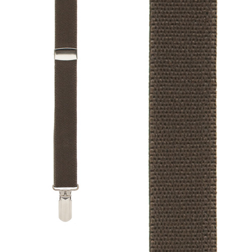 Brown suspenders are a classic and timeless way to accessorize any outfit, whether you're looking to add a textured look to your business attire with trendy brown leather suspenders or want to subtly underscore your vibrant style with sleek light brown suspenders. Their neutral hue makes them the just-right piece to pair with nearly any other color, including shirts and pants with white, ivory, olive green, khaki, red or even plaid. The color brown conveys the qualities of stability, friendliness, honesty and warmth. With all these positive associations, sporting a pair of brown suspenders is a "no-brainer" for business situations, but they can also class-up date-night outfits or wedding attire with an air of sophistication and elegance. Particularly classy with whites and ivories, brown is more casual and approachable than black when paired with these colors. Depending on the color undertones, browns can vary from deep chocolate browns to lighter maple browns, sepias, khakis and russets. Suspender Store carries brown suspenders in six sizes and more than 40 styles including brown paisley suspenders, brown plaid suspenders, brown leather suspenders, brown solid color elastic suspenders in six widths, and a wide variety of brown novelty suspenders. We supply both women's and men's brown suspenders at SuspenderStore. Shop our vast selection of brown suspenders today, including best-sellers like chocolate brown suspenders in striped, braided and patterned styles. We have all-time classic styles - including the best-ever assortment of men's brown leather suspenders ever - as well as novelty suspenders with brown motifs for a fun outfit finish. For example, we have brown-toned styles with characters, animals, argyle prints, camouflage and more to suit your unique personality.