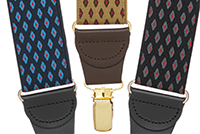 Jacquard fabric (pronounced "jack-ard") is a woven fabric featuring intricate patterns. Our jacquard suspenders feature a subtle tone-on-tone motif against a solid background of the same color. These suspenders are dressy and sophisticated and are often worn with business and dress attire. We carry these suspenders in multiple sizes to fit most adults and in both clip and button-on style.