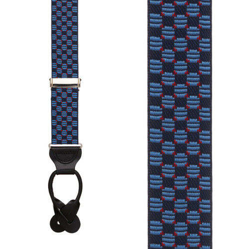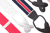 Whether you're looking for suspenders or braces to wear with a tuxedo for a formal occasion, or a pair of dressy suspenders for the office, we’ve got you covered. Available in an array of classy and traditional materials and patterns, our upscale button-on braces are the perfect finishing touch for your business and formal attire. Wear these button suspenders with a tuxedo or other formalwear to a wedding, black tie event, prom or any other event where formal dress is required. Our wide selection of button-on dress braces includes high-quality products with a variety of different prints, materials and designs. Browse our button-on formal braces to find a snappy new addition to your business attire. Some of the options you’ll find include French satin suspenders, jacquard suspenders, hounds-tooth suspenders, herringbone suspenders and silk suspenders. There is a perfect option for every style and every outfit. Most of our business wear button suspenders also come in multiple colors, widths and lengths. You may be wondering what the difference is between suspenders and braces. There is no difference. They’re the same thing with different names. Typically, British people call them braces and Americans call them suspenders. However, in the U.S., the term "braces" usually refers to button-on, slightly more expensive business wear, while "suspenders" is used as a more generic term including a wider range of attachments, styles and price points. Are you seeking a more casual, lower cost button suspender? We carry a broad selection of basic button suspender colors and patterns starting as low at $15.95. Visit our button suspenders page to browse our high-quality selection of casual button suspenders.