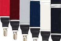 Here at SuspenderStore, we offer a broad selection of dressy suspenders with clip attachments for when you want the upscale look of dressier materials such as jacquard, grosgrain, barrathea or silk but don't want to sacrifice the easiness of clip-on suspenders. Whether you're looking for dress clip-on suspenders for business or high-end silk suspenders to wear with a tuxedo for a formal occasion - wedding, black-tie, prom or another special event - we've got you covered. Available in an array of classy and traditional materials and patterns, our hard-to-find upscale clip suspenders for men and women are the perfect finishing touch for your business and formal attire. These dressy suspenders are made with the most decadent, luxurious materials around but still feature the practicality of the clip style to help you get dressed fast with minimal complication. Featuring drop clips and classy fabrics like French satin, jacquard, grosgrain and silk, you can choose from a variety colors, patterns and widths. Our standard elastic clip-on suspenders can also be used for dress occasions for those looking to economize. Or for a different look, pick one of our collection of dressy leather suspenders. SuspenderStore.com is the world's best online suspender store for guys and gals in search of dressy suspenders made for quality and longevity. Premium styles made from genuine silk make the perfect gift for the suspender collector on your list, while budget-friendly basic dressy suspenders are a great choice for those who don't rock the suspender every day but still want an accessory for steadfast style on special occasions. Any of these options are sure to look great and will provide the perfect finishing touch to your dress attire!