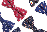 Are you looking for a way to add a little pizzazz to your outfits? Pattern bow ties are the way to go. There is something distinguished and refined about wearing a bow tie and when you wear one with a pattern, you up the wow factor. People will want to get a closer look just to see what exactly is on your bow tie. They definitely make a great conversation starter! Whether you only wear one to black tie events or like to include them in your daily wear, shop our eclectic assortment of bow ties for the pattern that speaks to you. Once a purely formal accessory, the bow tie has evolved throughout the fashion years in such a way that they can be found in many casual settings. Scan any glossy magazine or fashion blog and you will see that many men and women have learned how to incorporate the bow tie into their everyday style. Thanks to such Old Hollywood starlets as Katharine Hepburn and Marlene Dietrich, women have long been sporting this once male-only accessory. Some of our favorite pattern bow tie combinations include wearing a solid-colored button-down shirt with a bow tie in a complementary bold print such as plaid or check or with a suit at a wedding bedecked with your favorite team's logo. For those who are looking for a little bit of history behind this fashion accessory, we share the following tidbits: the bow tie gained popularity at the start of the nineteenth century and was a modification of its predecessor - the cravat (a wide strip of fabric worn around the neck and tucked inside an open-necked shirt). The tradition of adorning one's neck with fabric dates all the way back to the 17th century where the Croatian soldiers of the Thirty Years War were believed to be one of the first men documented to wear a necktie. In 1886, Pierre Lorillard is credited with designing what is now known as "black tie" attire including the traditional tuxedo and bow tie look.